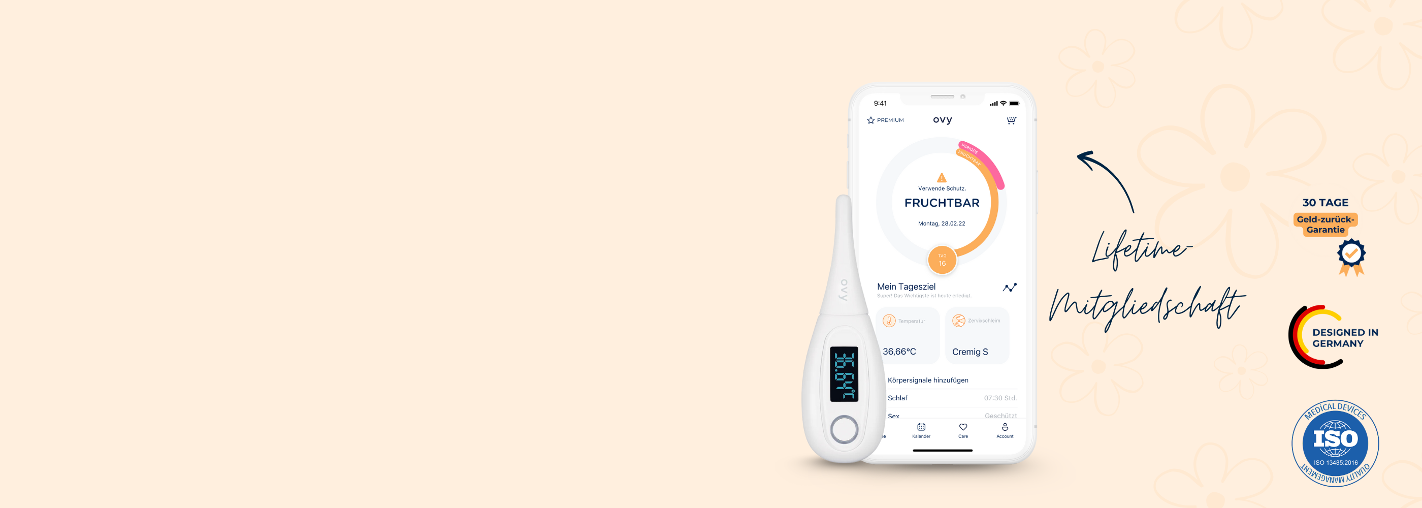 Anhand der symptothermalen Methode werden die fruchtbaren Tage des weiblichen Menstruationszyklus mit Hilfe der Ovy App bestimmt. Dabei werden Veränderungen der Basaltemperatur und des Zervixschleims oder des Gebärmutterhalses ausgewertet.