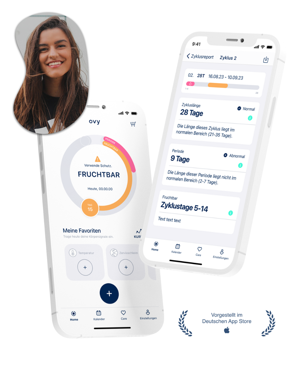 The fertile days of the female menstrual cycle are determined using the symptothermal method with the help of the Ovy App. This involves evaluating changes in basal temperature and cervical mucus or the cervix.