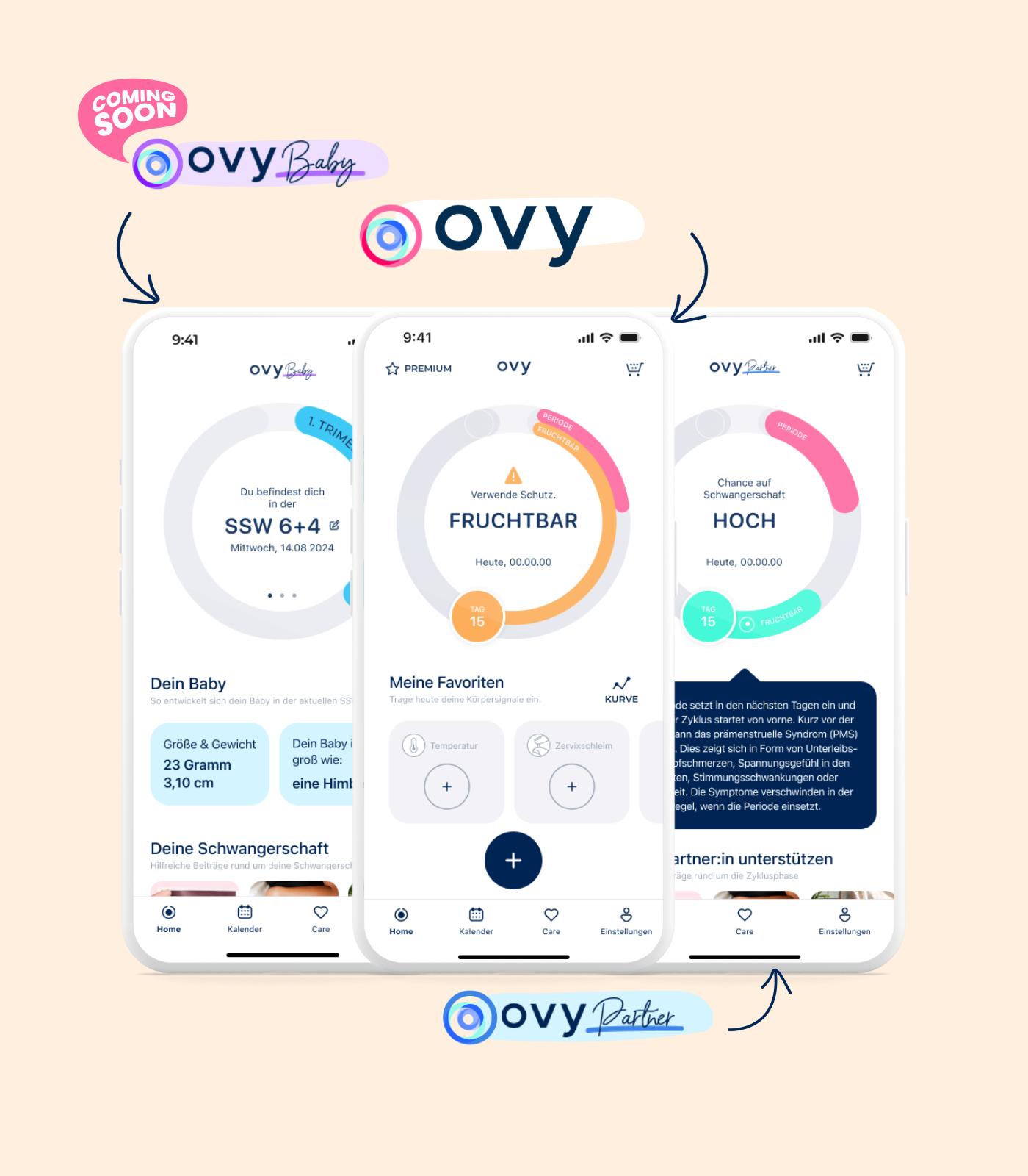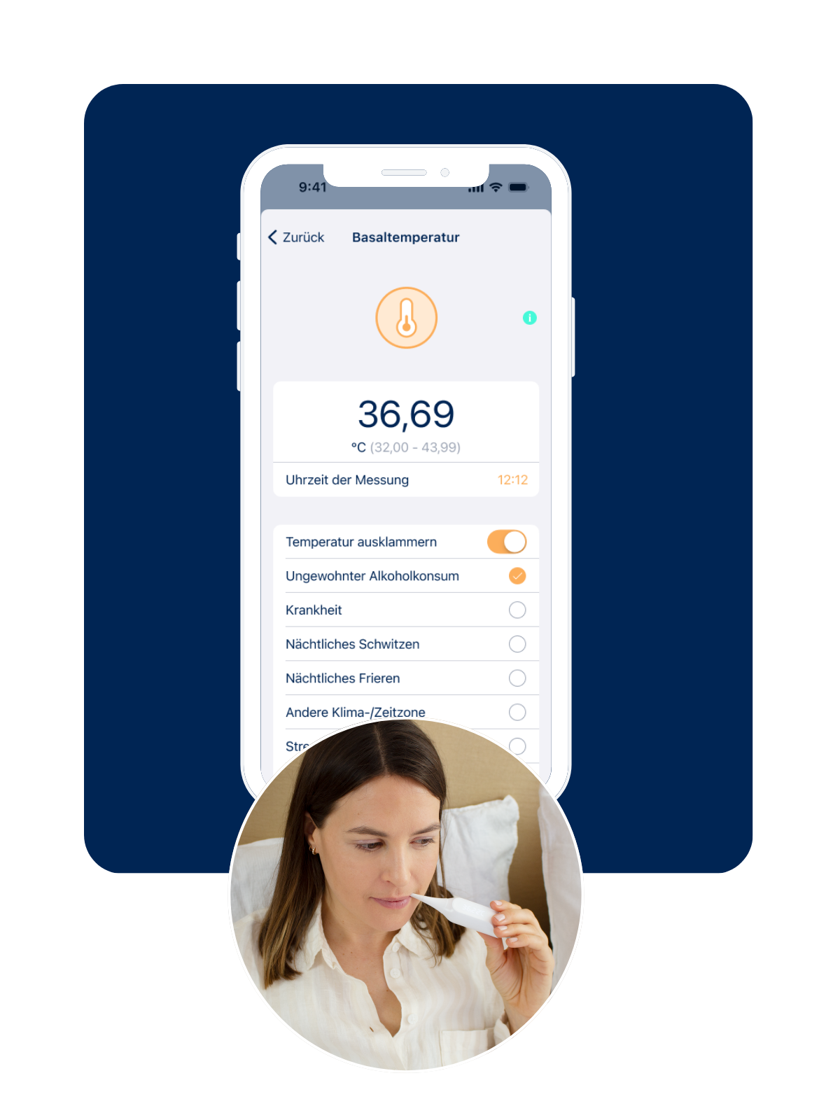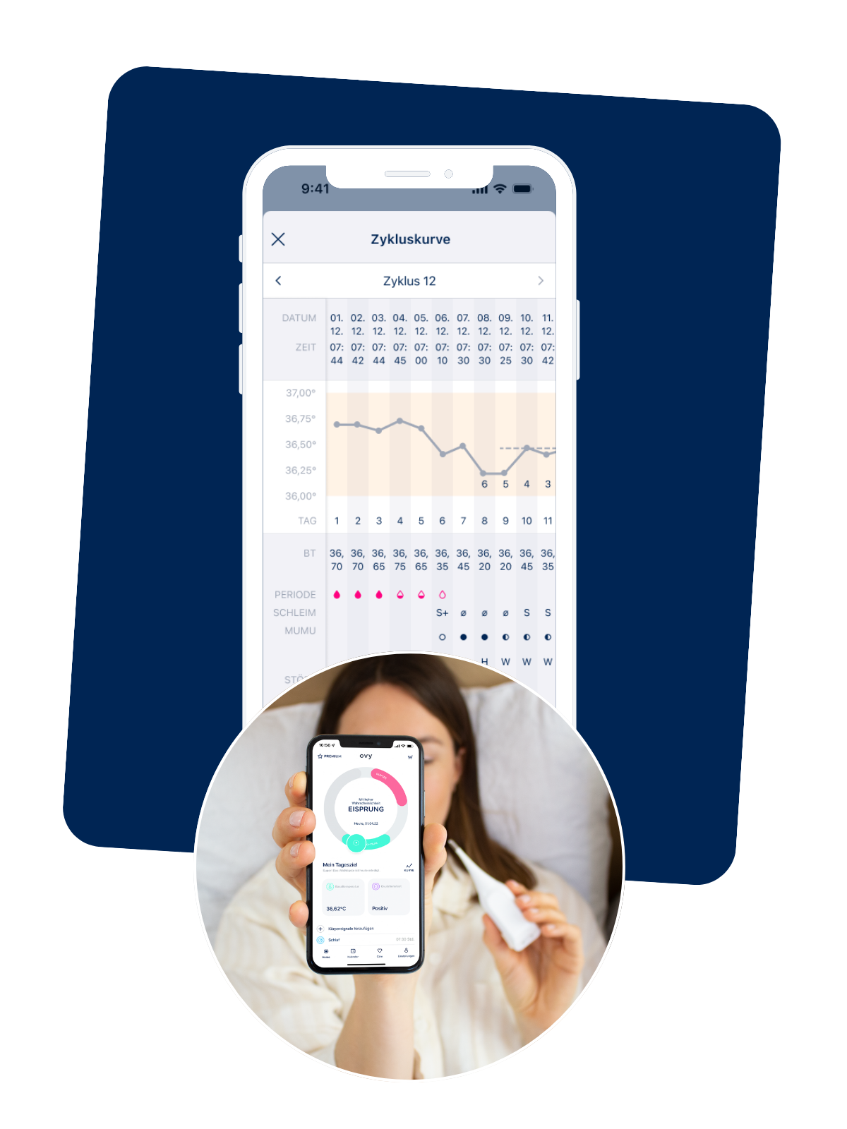 The Ovy App and the Ovy Bluetooth Basal Thermometer are suitable for women of reproductive age who wish to conceive and for women who want to track their cycle* in detail. The self-learning algorithm is based on the scientifically researched symptothermal method.