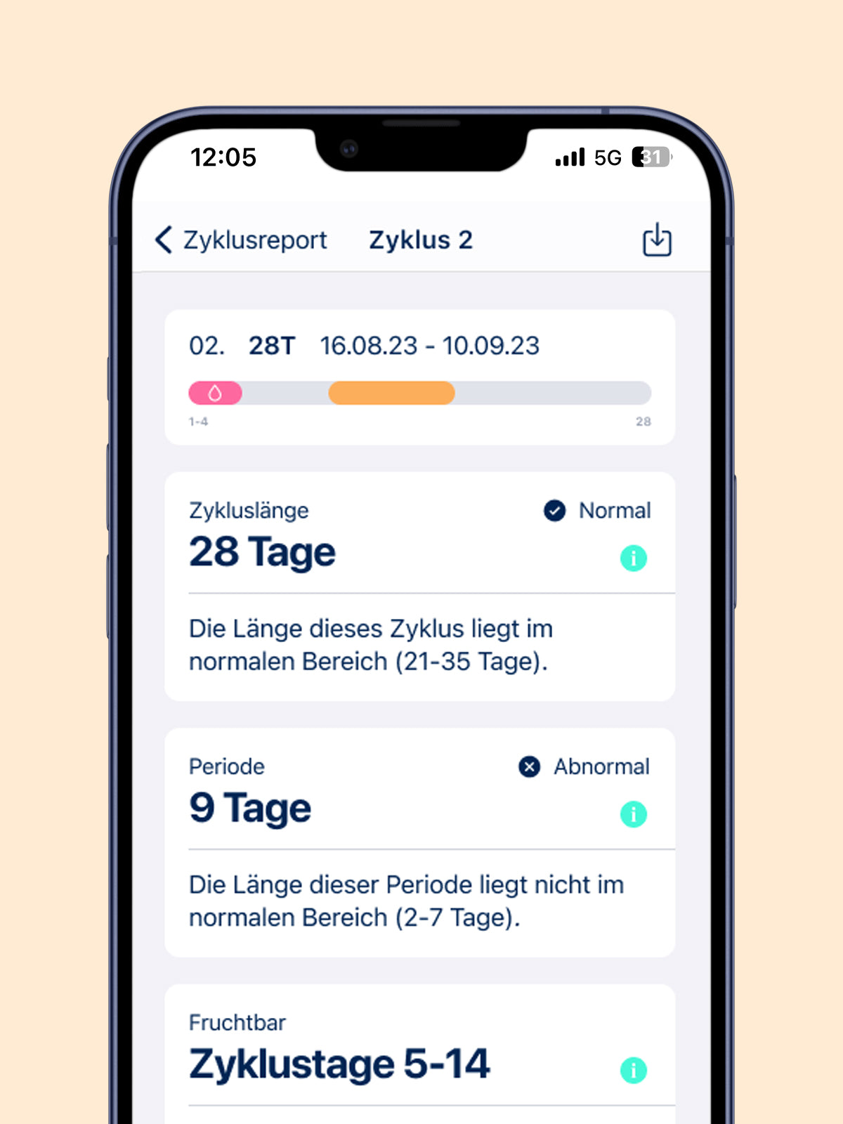 Lasse dir deine Zykluslänge, fruchtbaren Tage und Periode anzeigen, um deinen Körper noch besser zu verstehen.